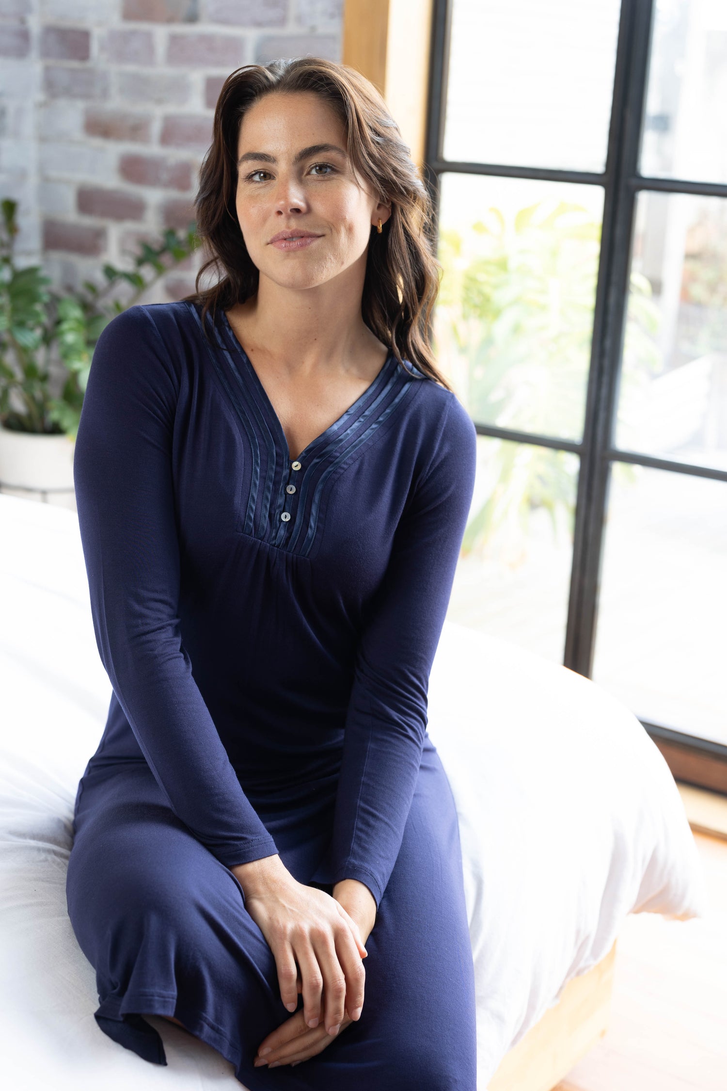 We offer a wide range of styles to cater to individual tastes and preferences, including matching pyjama sets, chemises, nighties, dressing gowns, and unique pieces for a signature look. Our collections stay true to current fashion trends with their prints while maintaining timeless designs that never go out of style. We pride ourselves on creating sleepwear that is not only sustainably made but also affordable, offering that extra something special without the hefty price tag.